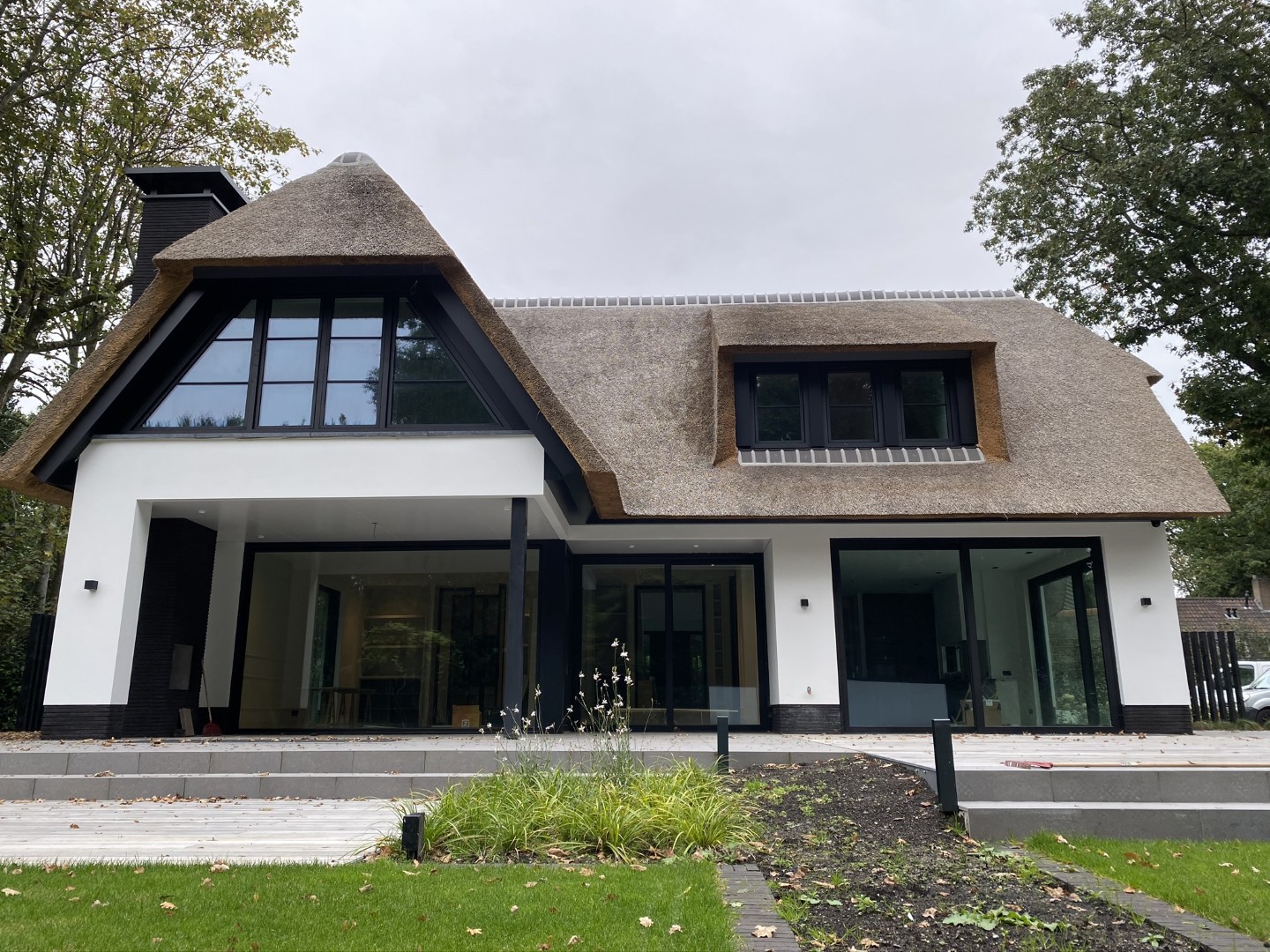 Het resultaat is een prachtige landelijke woning met een moderne, stijlvolle afwerking. De combinatie van een klassiek rieten dak met strakke zwarte aluminium kozijnen geeft de woning een uniek karakter: warm en authentiek van buiten, duurzaam en comfortabel van binnen.