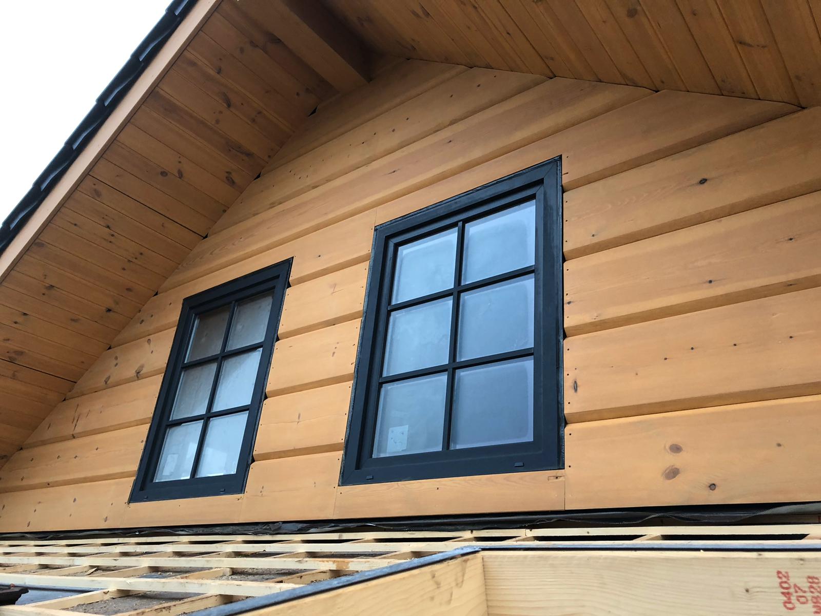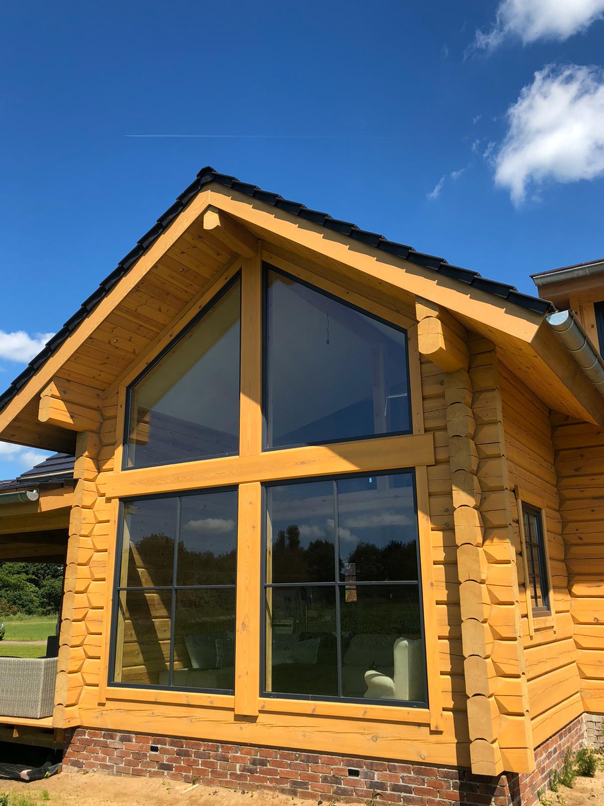 Om de woning te voorzien van een optimale isolatie en moderne afwerking, leverde Allbest Kozijnen B.V. alle kunststof kozijnen, volledig uitgevoerd met HR++ hoogrendementsglas. De kunststof kozijnen sluiten perfect aan op de robuuste houtconstructie en versterken zowel de isolerende eigenschappen als de esthetische balans van de woning.